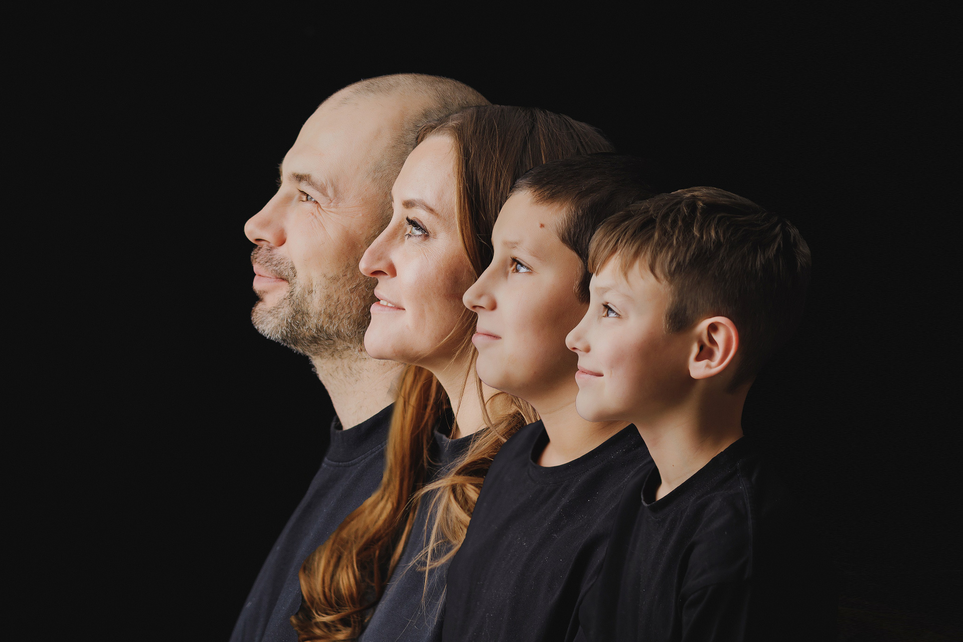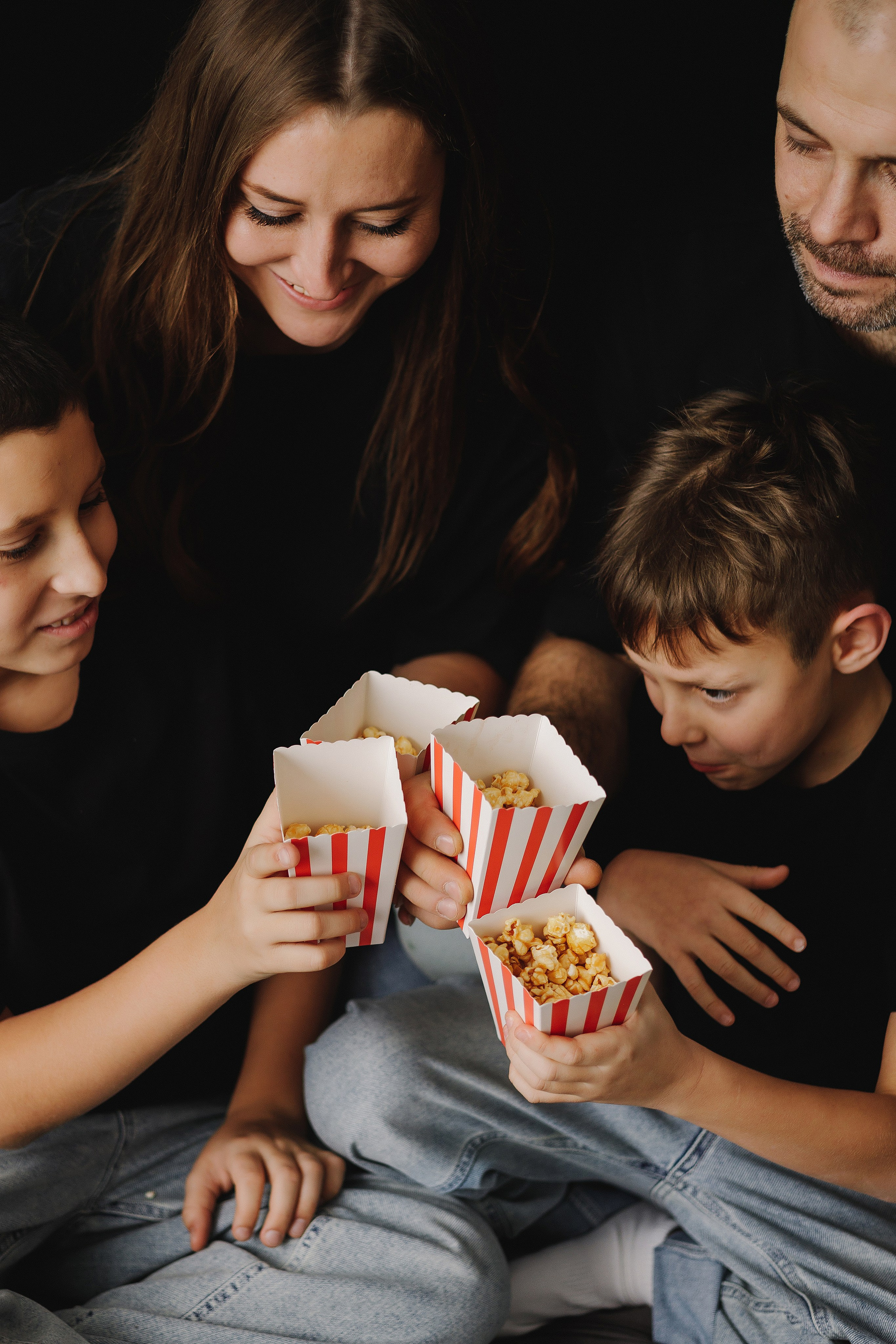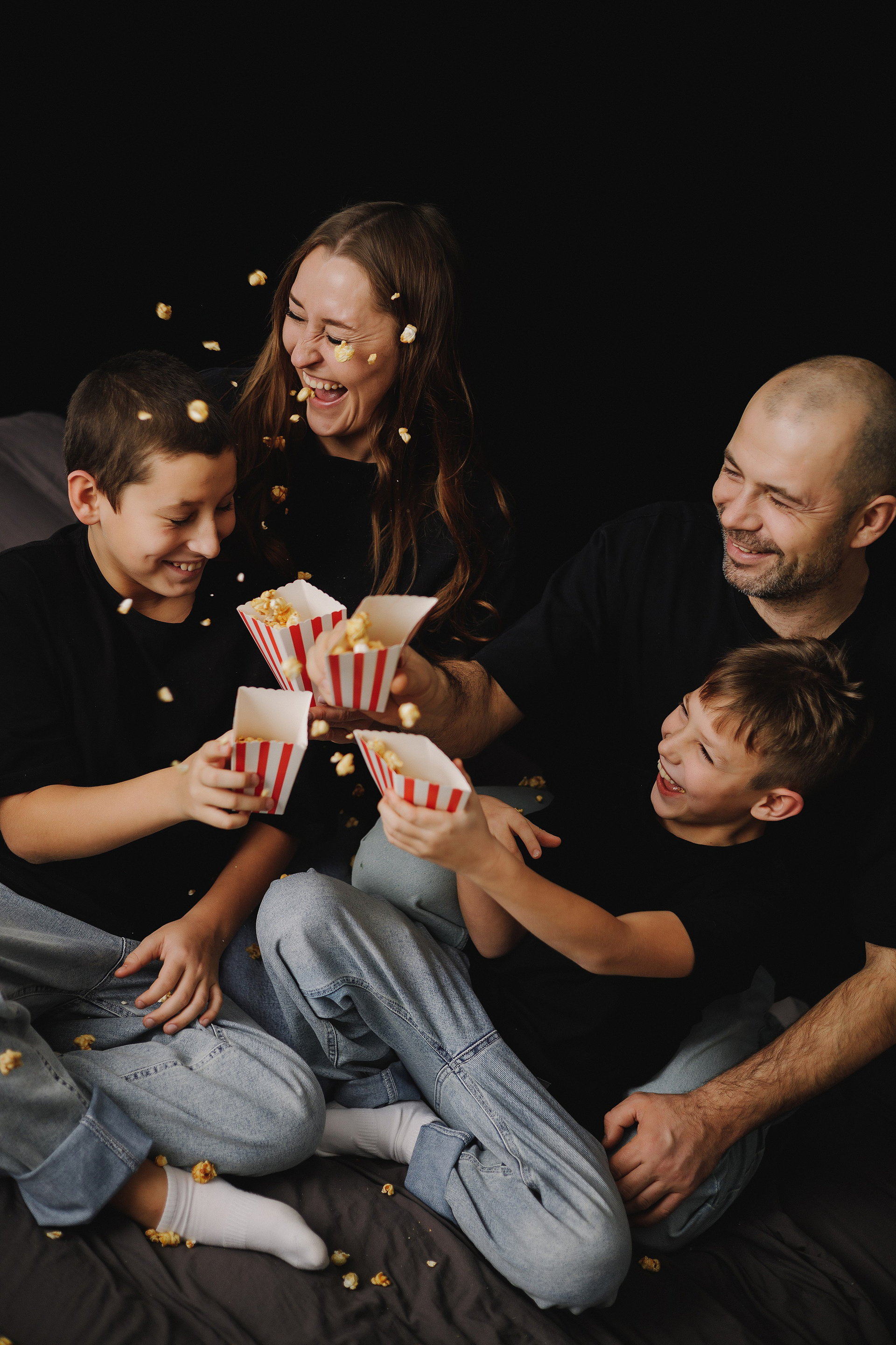 Фотография мамы, папы и двух сыновей в фотостудии