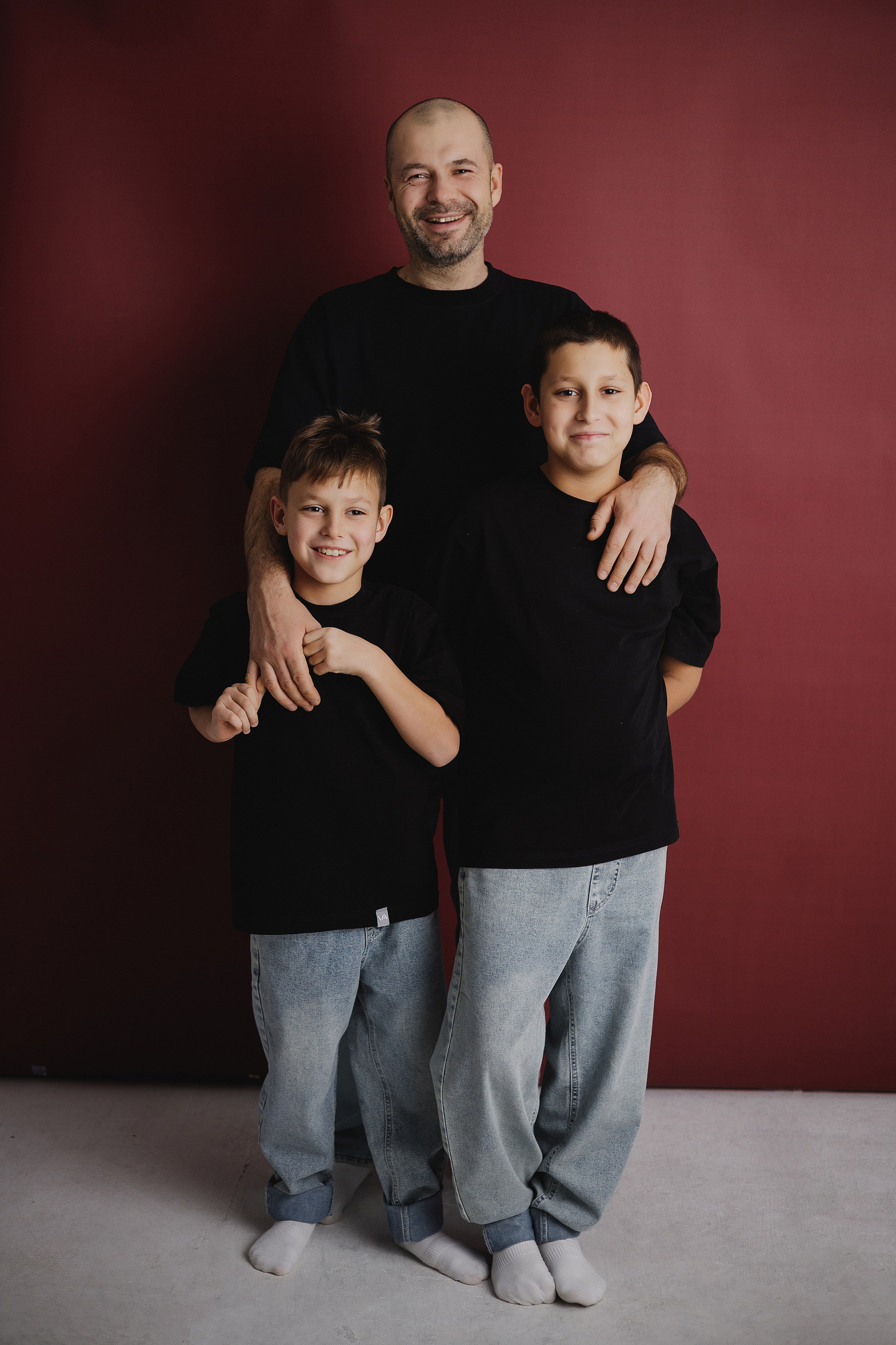 Фотография папы и двух сыновей в фотостудии