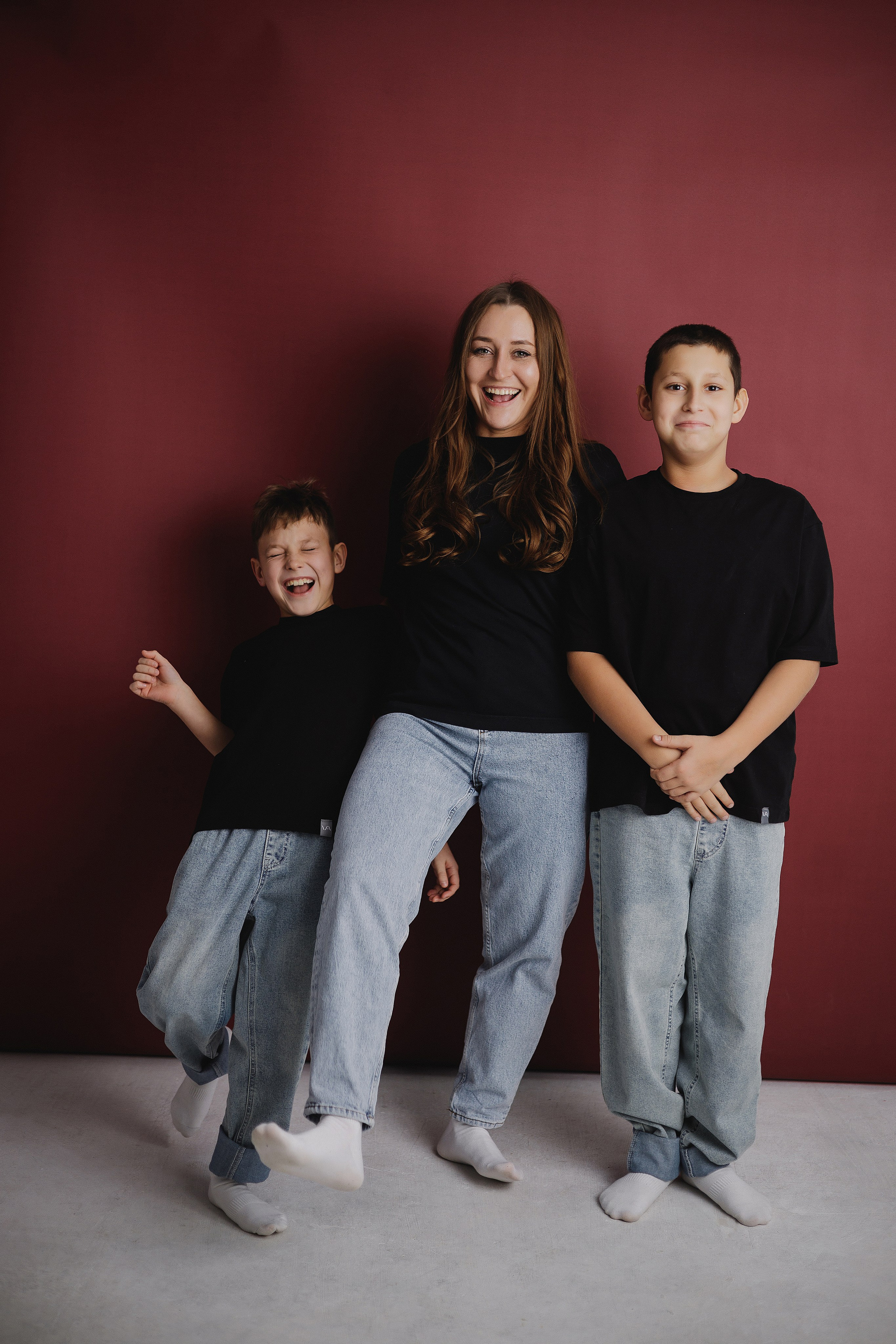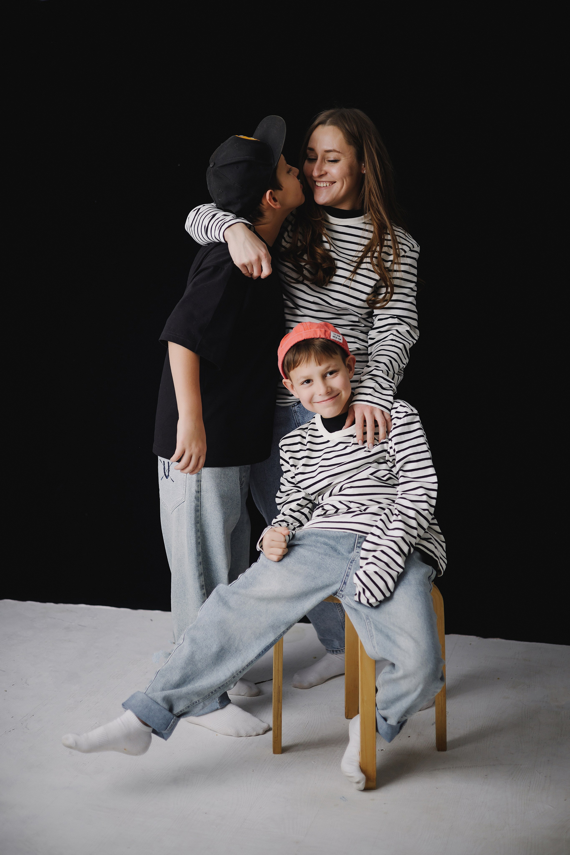 Фотография мамы и двух сыновей в фотостудии